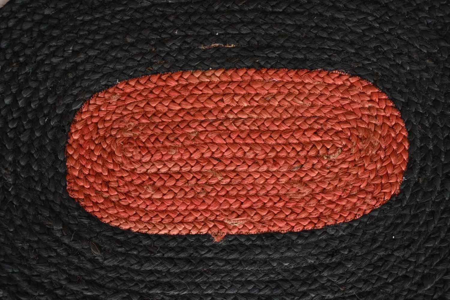 Elevate your entryway or cozy nook with this striking Black & Rust Two-Tone Oval Jute area rug. Featuring a bold black outer border framing a vibrant rust orange center, its distinctive oval shape and tightly braided flatweave construction create an inviting focal point. The rich, earthy tones bring warmth and character to any space, perfectly complementing both modern and traditional decor.